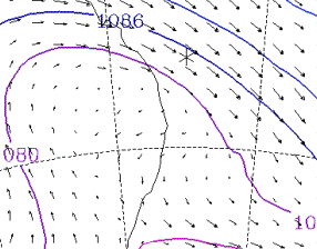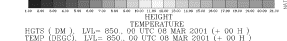 March 08, 2001, 00 GMT: NCEP AVN 850hPa analysis (Graphic from NOAA ARL).
