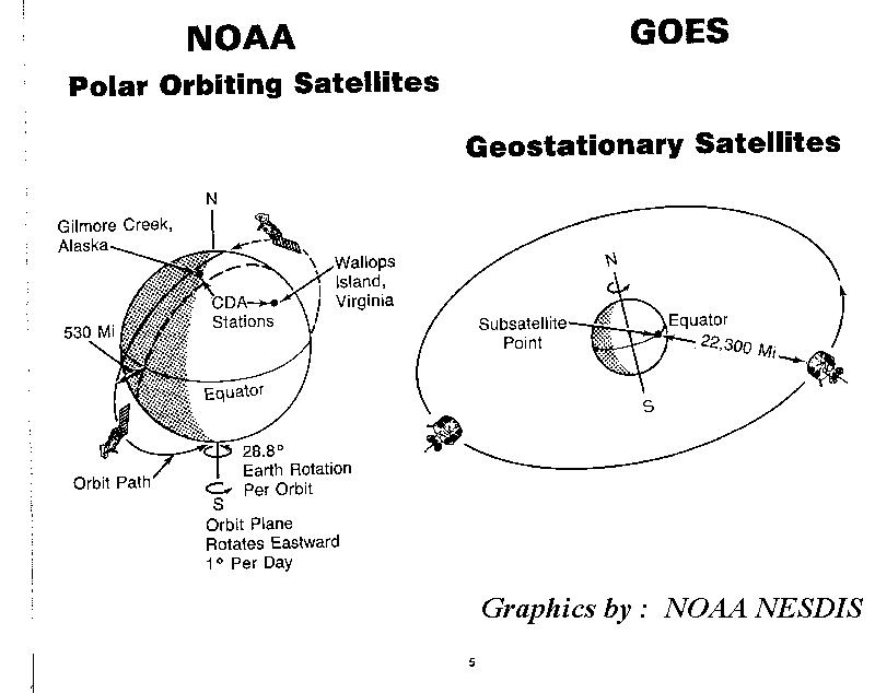 By contrast, the NOAA-TIROS satellite roughly orbits the earth from the
