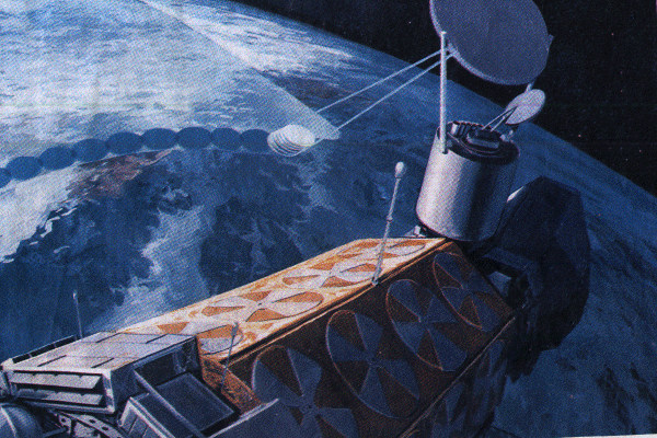 This artist's conception shows an Aerojet Electro-Systems SSMI scanning
