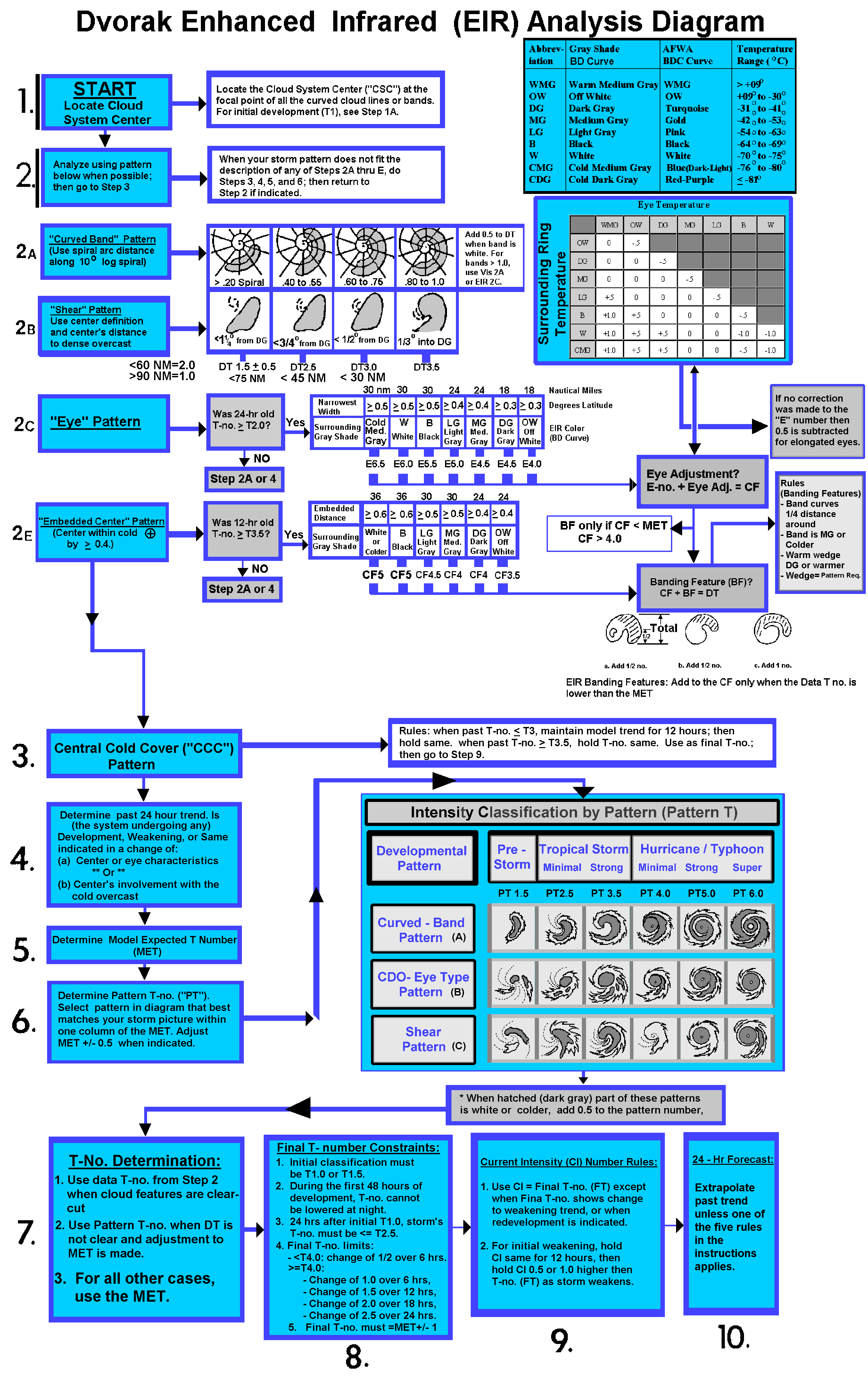 The following graphics are the standard Dvorak Flowcharts used at AFWA (These are enhanced versions of the original flowcharts developed by Vernon Dvorak, 1984):